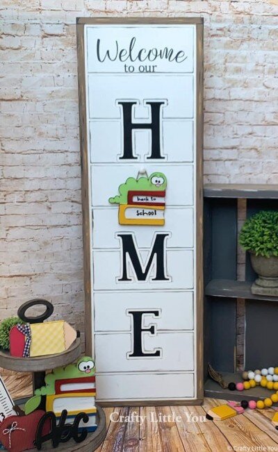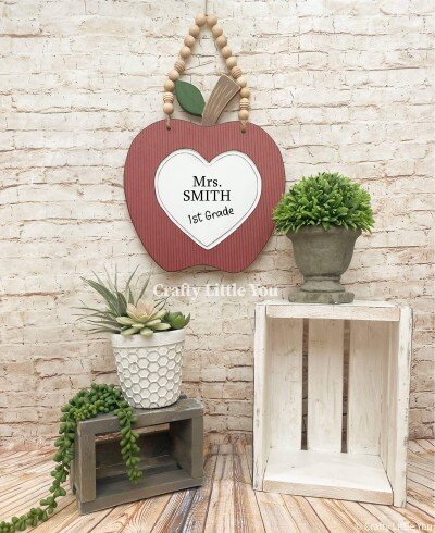 Unfinished apple measures 12” tall and includes wooden MDF •grooved Apple •black vinyl with your teachers name and grade