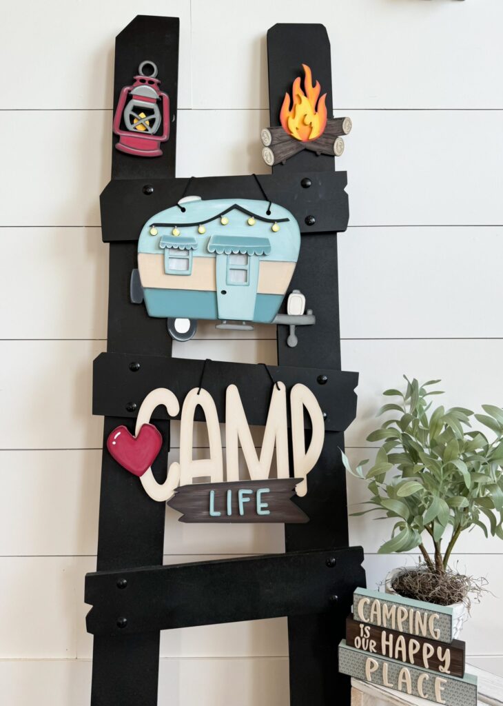 • 1 set of “happy campers” wood overlay letters